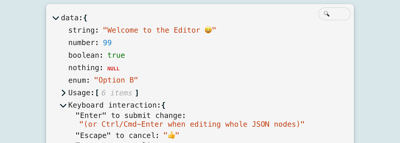 json-edit-react: Component to Edit and View JSON/Object Data — An elegant, well presented component to take a JavaScript object, complete with nested objects, and show off the values, as well as allowing users to edit them. Has a neat demo on the homepage showing how flexible it is. GitHub repo. Carl Smith |