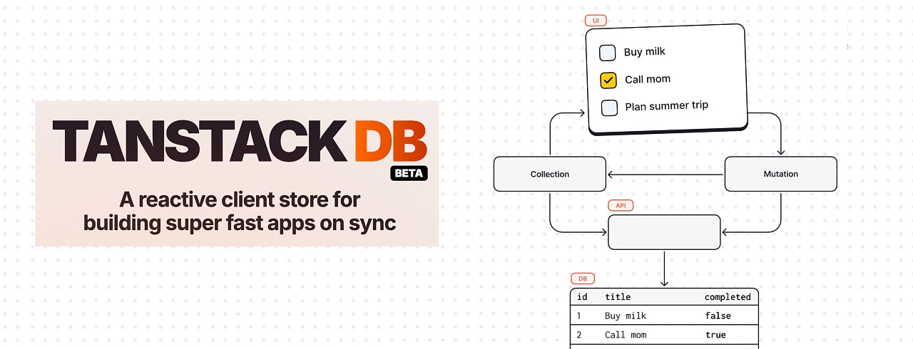 An Interactive Guide to TanStack DB — TanStack DB is the latest project from the popular TanStack collection and offers an embedded client‑side database that uses differential dataflow to power live, relational queries, sub‑ms incremental updates, and optimistic writes. But what does that mean in real life? Maxi spent a week playing with it to see what makes it tick and where it enhances the TanStack Query experience. Maxi Ferreira |
