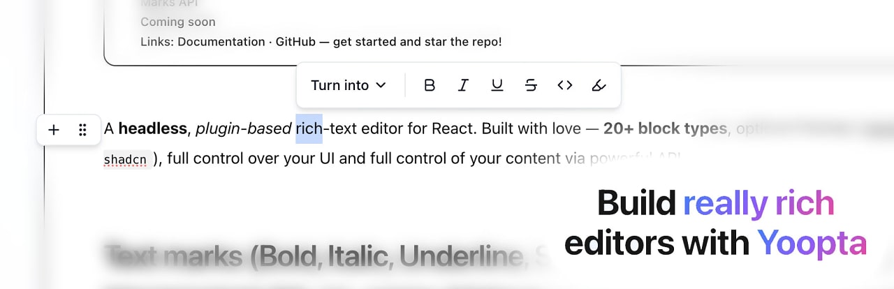 Yoopta Editor 6.0: A Headless Rich Text Editor for React — A MIT-licensed library for creating block-based, Notion-style rich text editing experiences. It’s headless at heart, but comes with a variety of plugins, block types and pre-built UI components so you can get something running quickly. This playground shows off a live example.